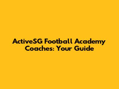 ActiveSG Football Academy Coaches: Your Guide