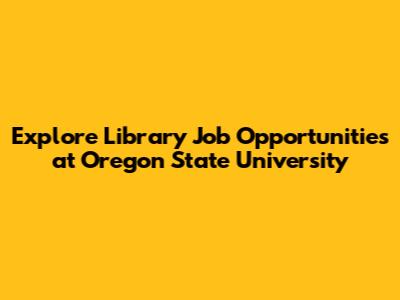 Explore Library Job Opportunities At Oregon State University