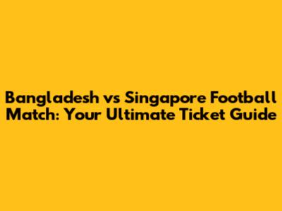 Why You Shouldn't Miss the Bangladesh vs Singapore Football Match