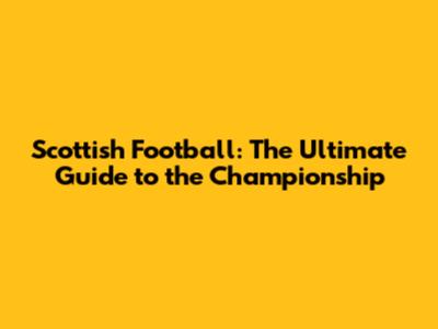 Scottish Football: The Ultimate Guide To The Championship